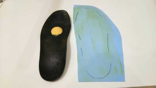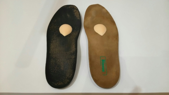 元々のインソールがまだ使える状態でしたので、今回は『横アーチをパッドで直接持ち上げて足趾の付け根にかかる負担を軽減』させて頂くことに決まりました。
