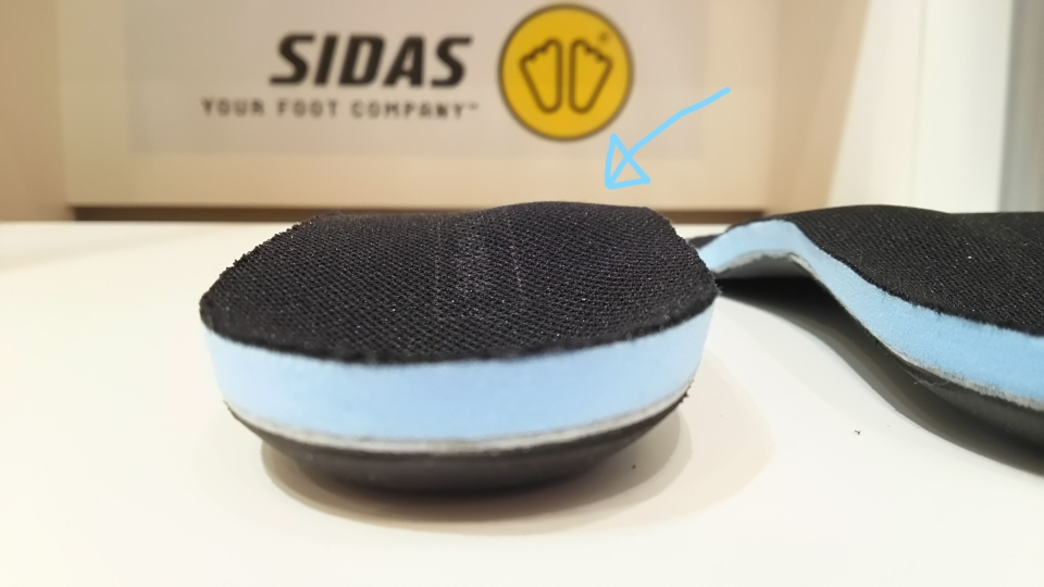 そのために立方骨付近も同時に支える(上の写真の矢印部)調整をすることで、浮きやすい外アーチを埋めつつ、それ以上緊張しすぎないようにさせる効果もあります。