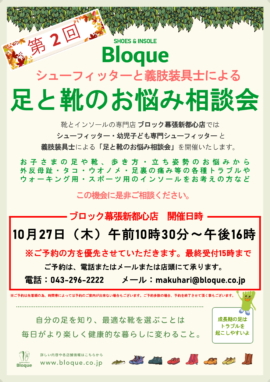 ブロック幕張新都心店 第2回 「足と靴のお悩み相談会」を開催いたします。