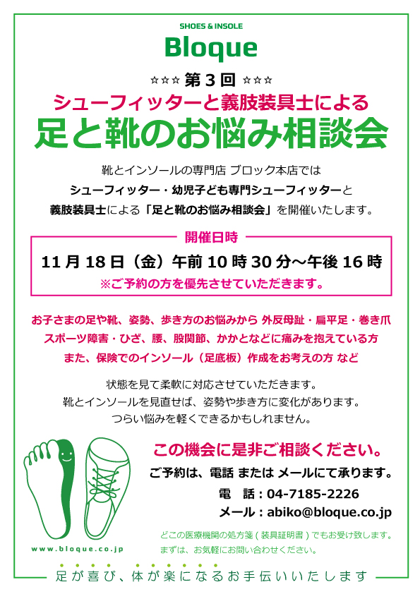 ブロック本店 第3回 シューフィッターと義肢装具士による【 足と靴のお悩み相談会 】開催!