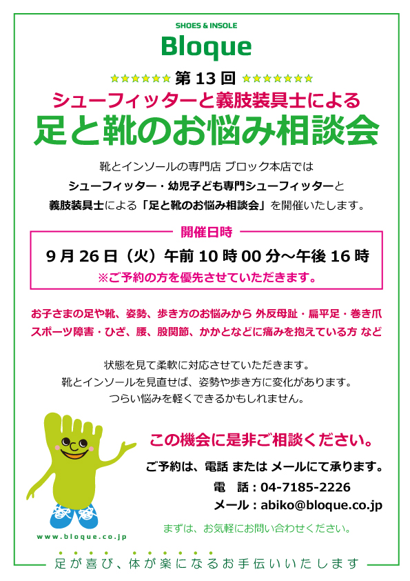 ブロック本店 第13回 シューフィッターと義肢装具士による【 足と靴のお悩み相談会 】開催!