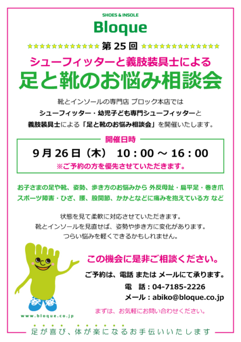 ブロック本店 第25回 シューフィッターと義肢装具士による【 足と靴のお悩み相談会 】開催!