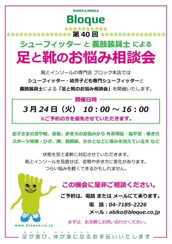 ブロック本店 第40回 シューフィッターと義肢装具士による【 足と靴のお悩み相談会 】開催!