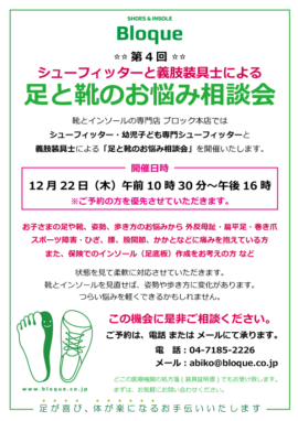 ブロック本店 第4回 シューフィッターと義肢装具士による【 足と靴のお悩み相談会 】開催!