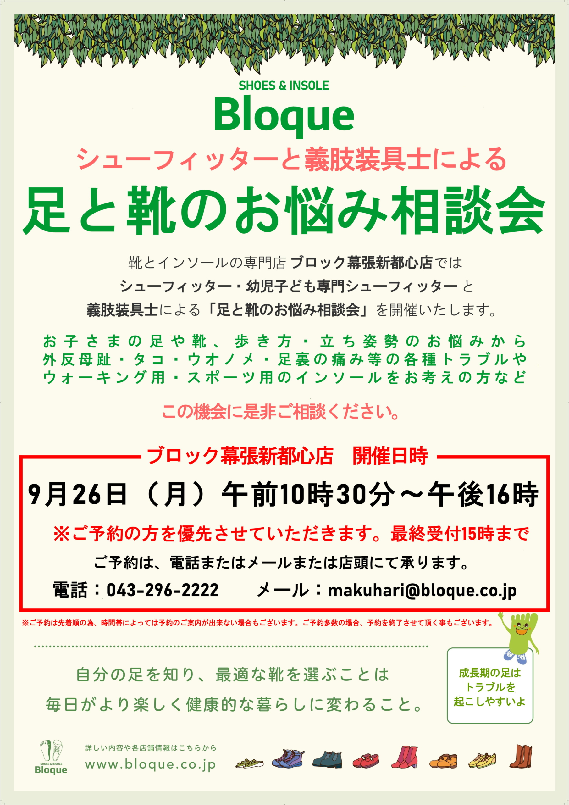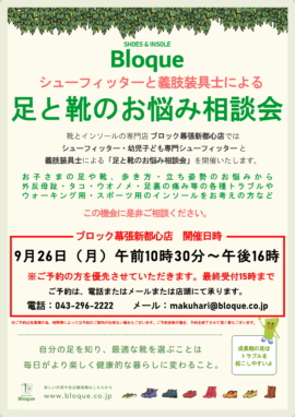 ブロック幕張新都心店 シューフィッターと義肢装具士による 「足と靴のお悩み相談会」開催!!